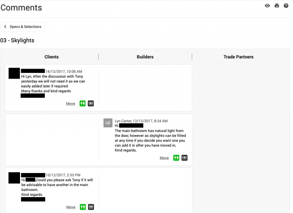 We know that communication can be a concern for anyone starting a new building project. But with Co-Construct, you don’t have to worry. The program is designed to be easy to use, with features like the Selection Sheet, Notifications about upcoming decisions, and the Comments system, you can keep track of all your choices and the progress of your design and build; asking questions anytime, anywhere.